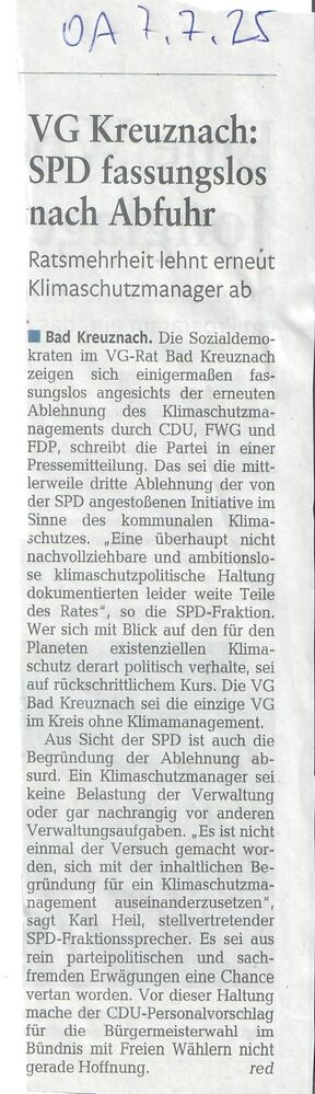 Zum abgelehnten Klimaschutzantrag der SPD-Fraktion