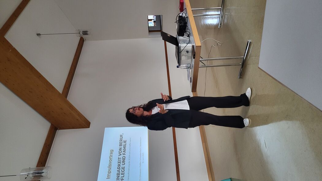 Als kompetente Referentin mit hoher Expertise konnte die Pflegeberaterin Irini Langensiepen gewonnen werden, die den Veranstaltungsbesuchern einen umfassenden Einblick in die Thematik gab. Sie erläuterte die vielfältigen psychischen Anforderungen, vor denen pflegende Angehörige in Berufstätigkeit stehen. Dabei betonte sie die Bedeutung einer guten Organisation und die Notwendigkeit, frühzeitig Unterstützung in Anspruch zu nehmen. Ein wichtiger Anlaufpunkt für Betroffene seien die Pflegestützpunkte in Rheinland-Pfalz, die qualifiziert beraten würden. Gleichwohl brauche es politischer Maßnahmen und Verbesserungen. Irina Langensiepen lieferte beeindruckende Zahlen: Es sei von ca. 5,7 Millionen pflegebedürftigen Menschen auszugehen, 4,1 Millionen, die in einer Erwerbstätigkeit stünden, pflegten Angehörige. Hier sei auch von einer hohen Dunkelziffer auszugehen, führte Langensiepen aus. Umso wichtiger sei es das Thema offen anzusprechen und betroffene Menschen zu ermutigen, ihre persönliche Situation anzusprechen, gerade in Unternehmen und Betrieben. Arbeitgeber, Beschäftigtenvertretungen und die Tarifvertragsparteien hätten es auch mit Blick auf den Fachkräftemangel in der Hand, innerbetriebliche Entlastungen zu schaffen und die Vereinbarkeit von Pflege, Familie und Beruf zu unterstützen. Auch der Gesetzgeber und die Politik habe den Auftrag, die Rahmenbedingungen zu verbessern, Familienzeitgesetzgebung betreffe.